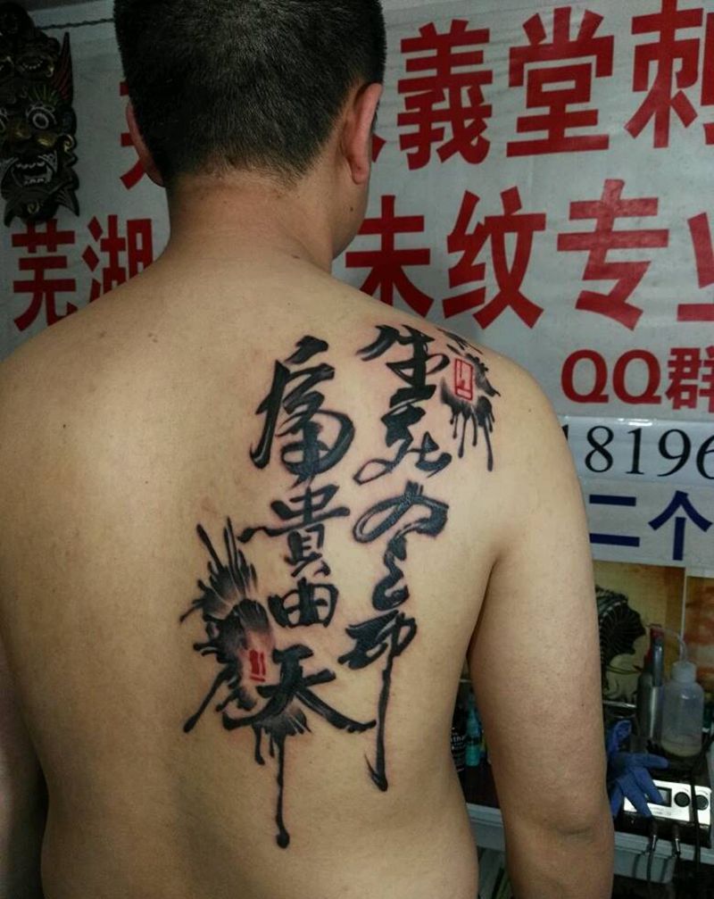 当前位置: 首页 >安徽省芜湖市纹身店-芜湖市永义堂刺青纹身店纹身图案>水墨汉字纹身图片_肩部背部手臂腿部脚部传统清新字符原创成品纹身图案