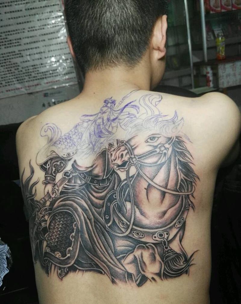 当前位置: 首页 >安徽省芜湖市纹身店-芜湖市永义堂刺青纹身店纹身图案>整背关公进行中。纹身图片_胸部腰部背部手臂腿部传统写实动物人物鬼神纹身图案