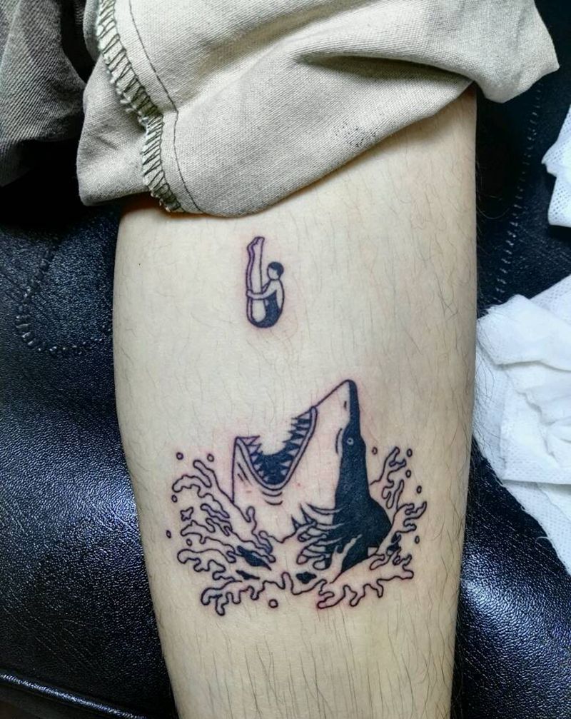 • T网红王老大花腿龙纹身图片_腿部新传统纹身图案