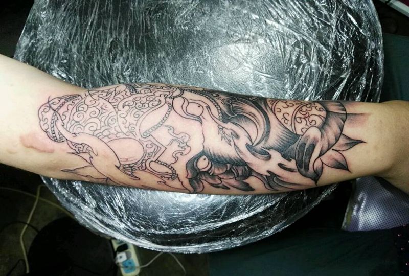 当前位置: 首页 >安徽省芜湖市纹身店-芜湖市永义堂刺青纹身店纹身图案>象神,未完。纹身图片