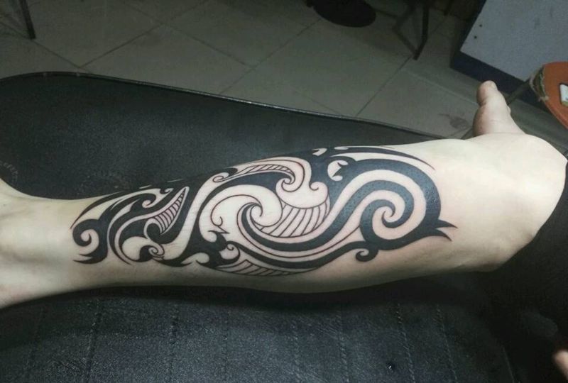 • T网红王老大花腿龙纹身图片_腿部新传统纹身图案
