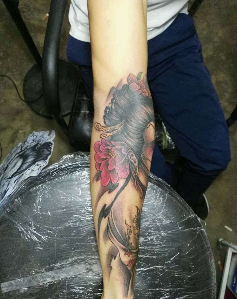 当前位置: 首页 >安徽省芜湖市纹身店-芜湖市永义堂刺青纹身店纹身图案>艺妓。纹身图片_背部手臂腿部传统肖像人物成品纹身图案