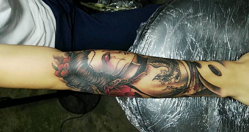 当前位置: 首页 >安徽省芜湖市纹身店-芜湖市永义堂刺青纹身店纹身图案>艺妓。纹身图片_背部手臂腿部传统肖像人物成品纹身图案