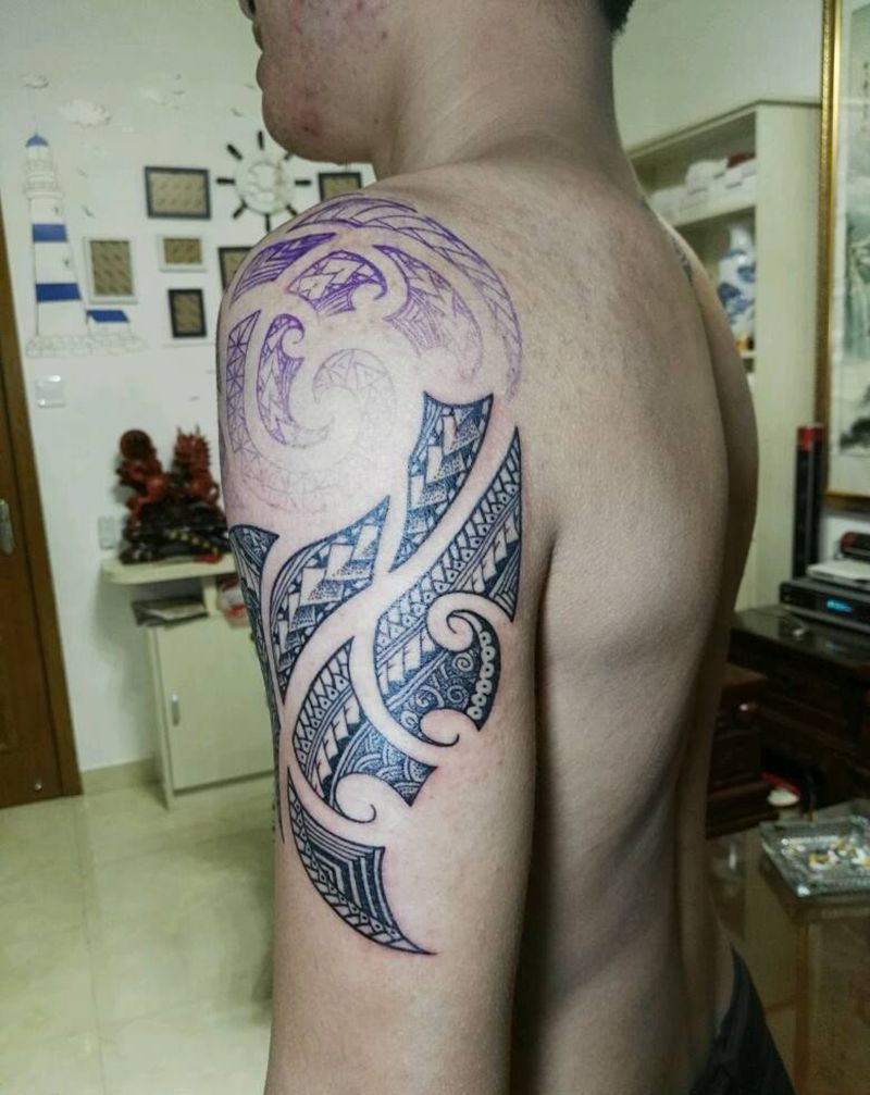 • 纹身吧推荐的披肩图腾半胛纹身图案作品展示