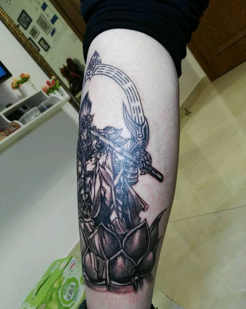 • T网红王老大花腿龙纹身图片_腿部新传统纹身图案