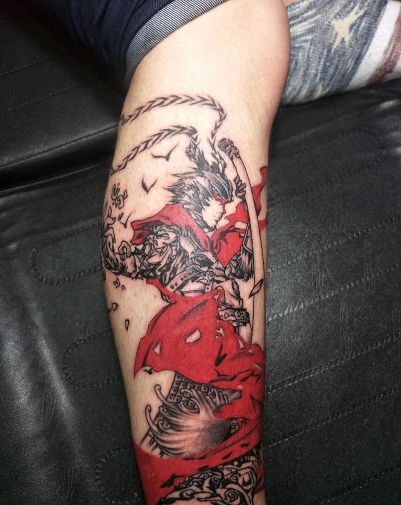 • T网红王老大花腿龙纹身图片_腿部新传统纹身图案