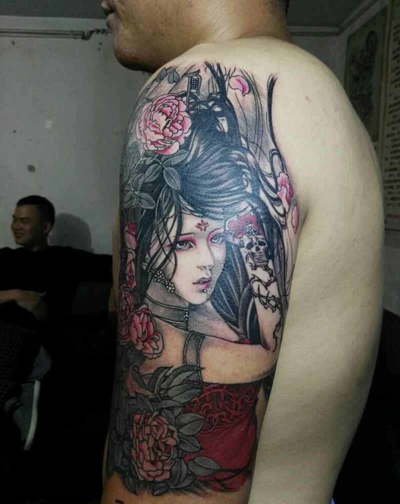 当前位置: 首页 >安徽省芜湖市纹身店-芜湖市永义堂刺青纹身店纹身图案>艺妓,遮盖旧纹身。纹身图片