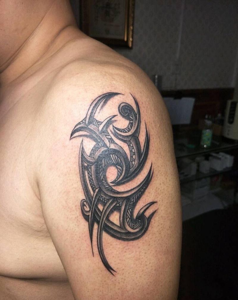 • 纹身吧推荐的披肩图腾半胛纹身图案作品展示