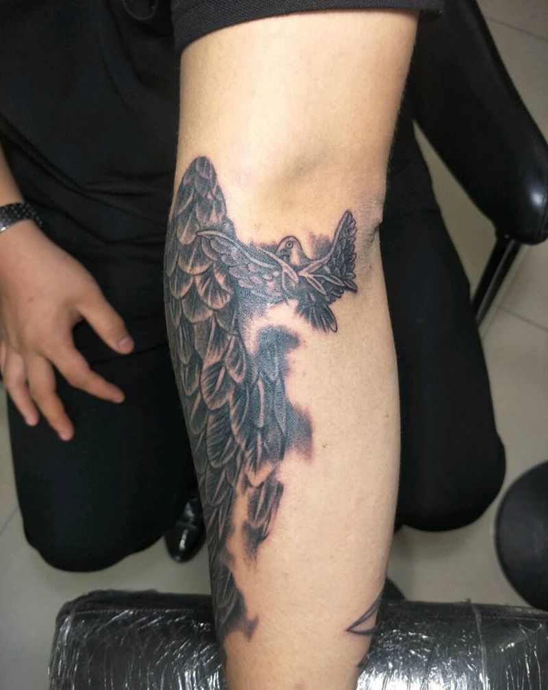 • T网红王老大花腿龙纹身图片_腿部新传统纹身图案