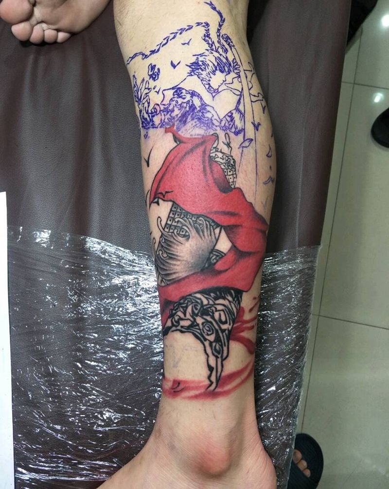 • T网红王老大花腿龙纹身图片_腿部新传统纹身图案