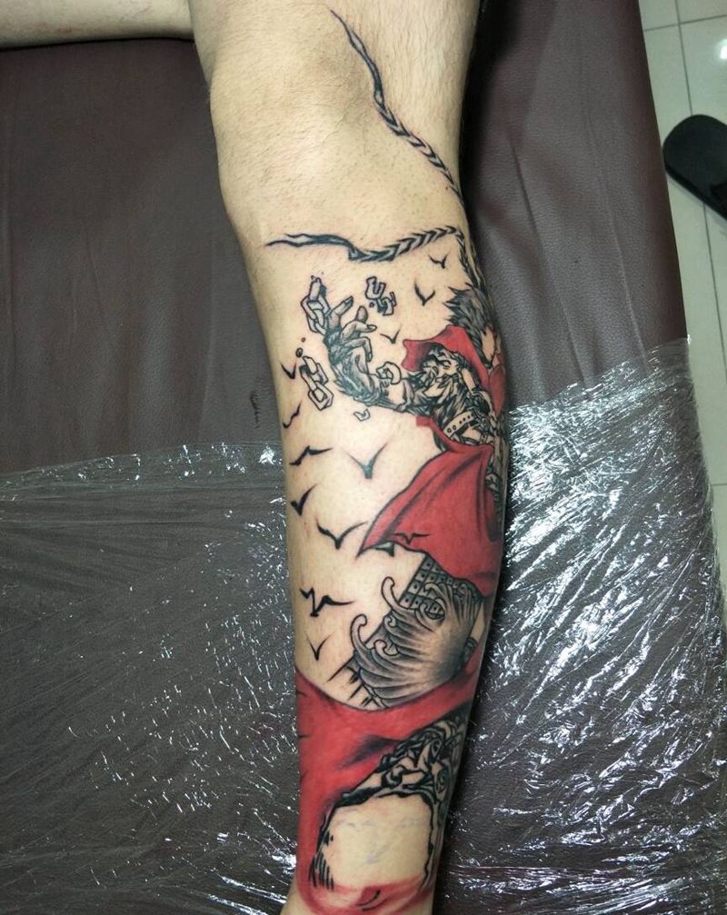 • T网红王老大花腿龙纹身图片_腿部新传统纹身图案