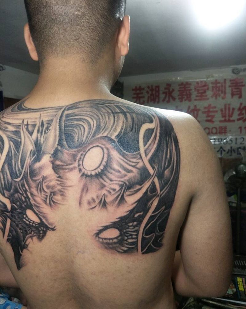 黑灰满背纹身图案