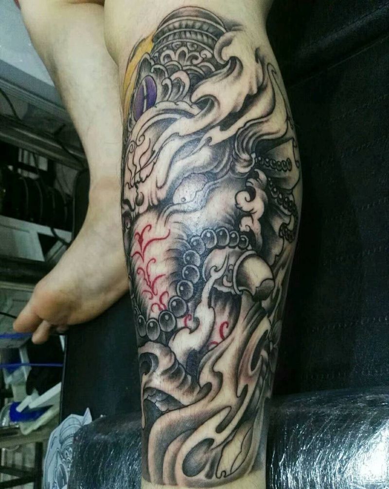 • T网红王老大花腿龙纹身图片_腿部新传统纹身图案