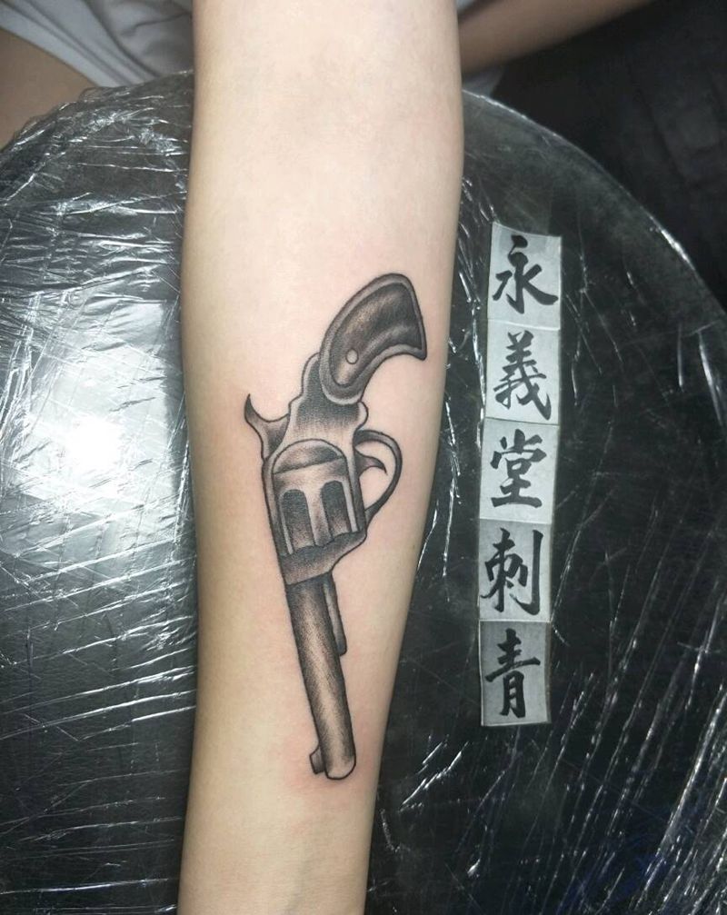 当前位置: 首页 >安徽省芜湖市纹身店-芜湖市永义堂刺青纹身店纹身图案>枪纹身图片