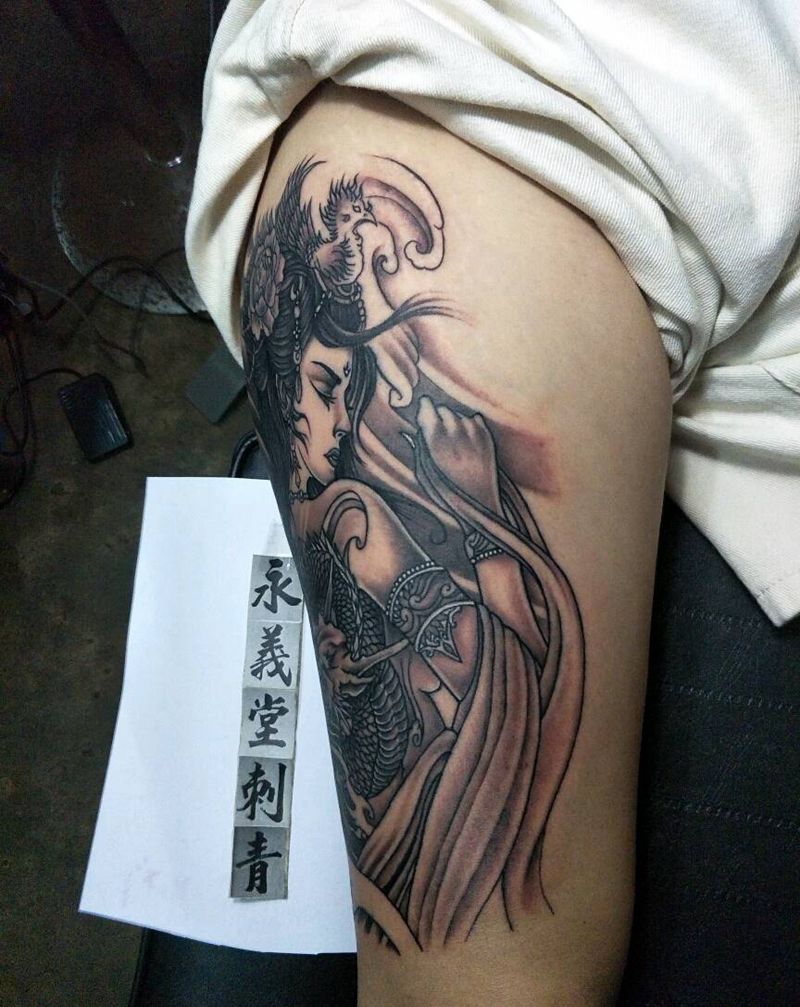 当前位置: 首页 >安徽省芜湖市纹身店-芜湖市永义堂刺青纹身店纹身图案>艺妓,王大全作品纹身图片