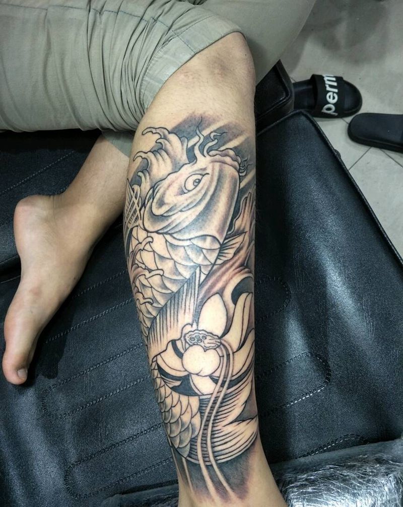 • T网红王老大花腿龙纹身图片_腿部新传统纹身图案