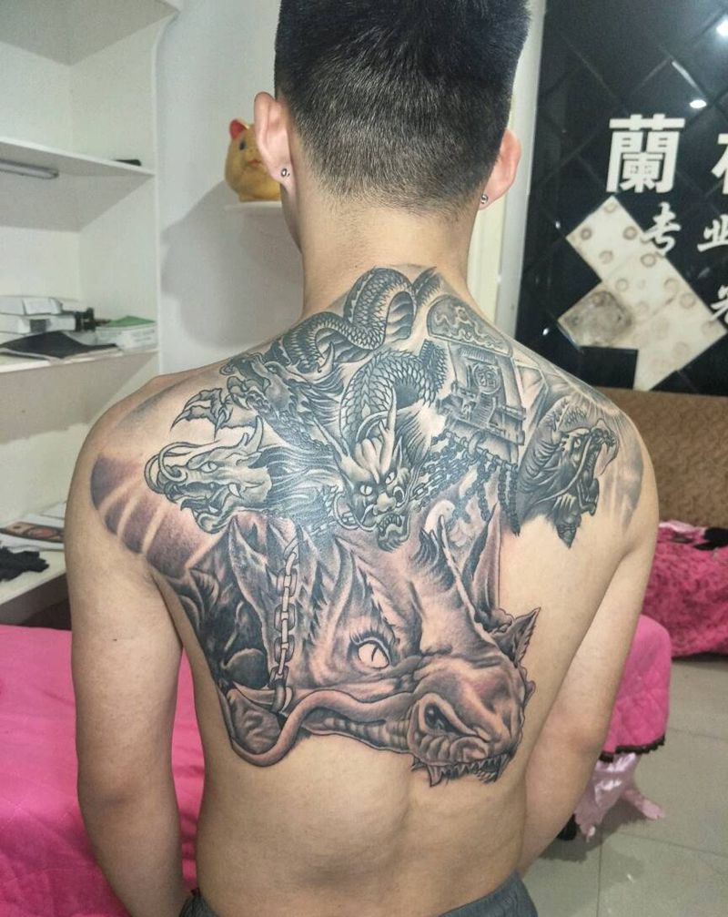 • T云龙九郎纹身图片_背部老传统云龙九郎纹身图案
