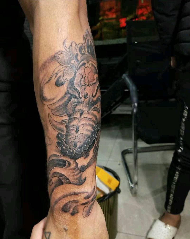 • T网红王老大花腿龙纹身图片_腿部新传统纹身图案
