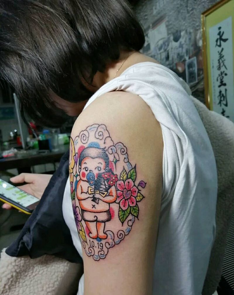 • T家庭图,一家四口生日纪念!纹身图片_手臂纹身图案