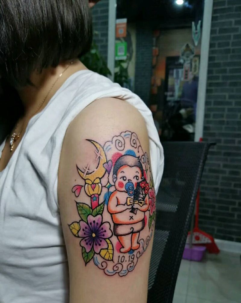 • T家庭图,一家四口生日纪念!纹身图片_手臂纹身图案