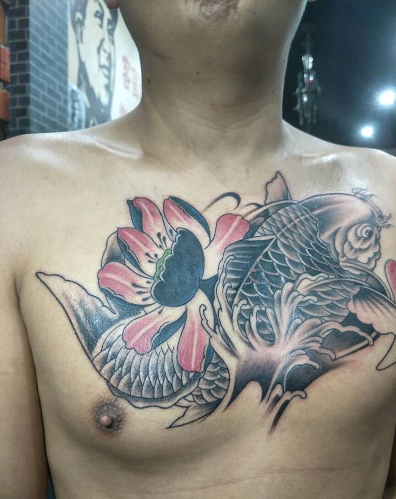 • 女性大花胸纹身_43张霸气漂亮的女性大花胸纹身图案作品
