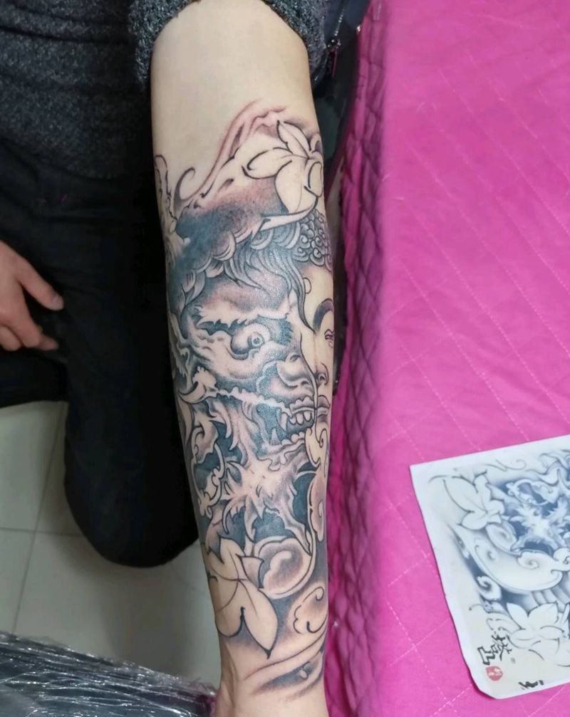 • T网红王老大花腿龙纹身图片_腿部新传统纹身图案