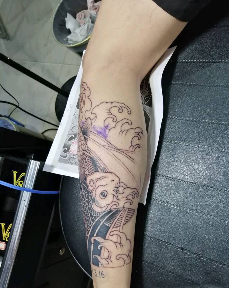 当前位置: 首页 >安徽省芜湖市纹身店-芜湖市永义堂刺青纹身店纹身图案>日式传统鱼,盖图,未完成纹身图片_手臂腿部老传统纹身图案