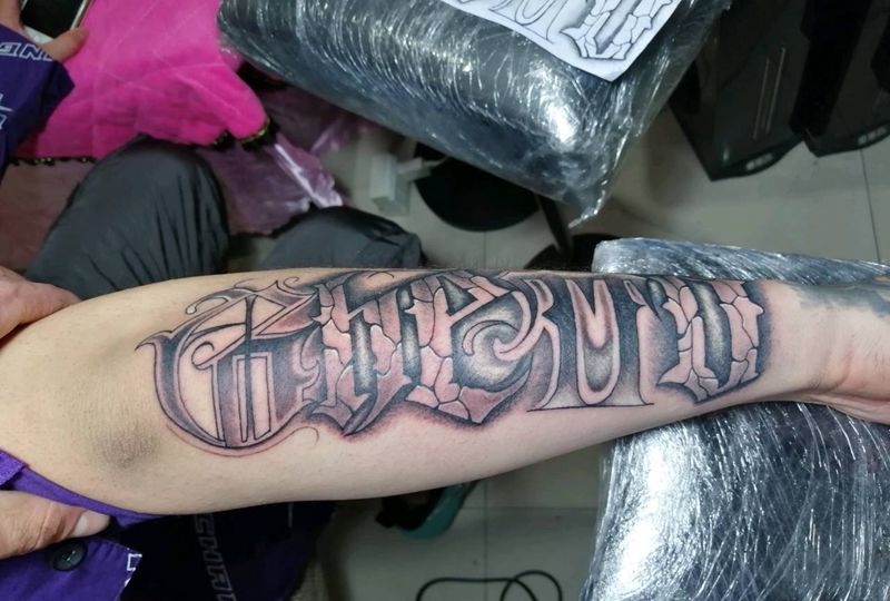 当前位置: 首页 >安徽省芜湖市纹身店-芜湖市永义堂刺青纹身店纹身图案>花体字母纹身图片_手臂手部花体字欧美写实花体字母芜湖永义堂纹身图案