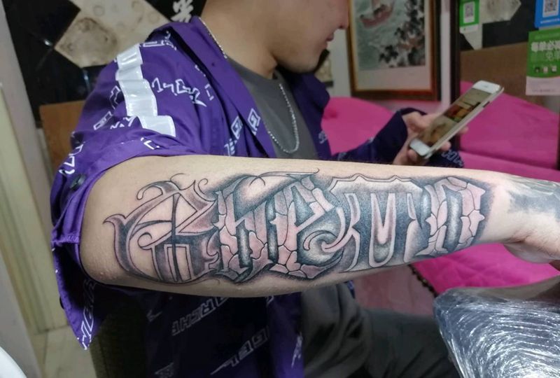 花体字母纹身图片_手臂手部花体字欧美写实花体字母芜湖永义堂纹身图案