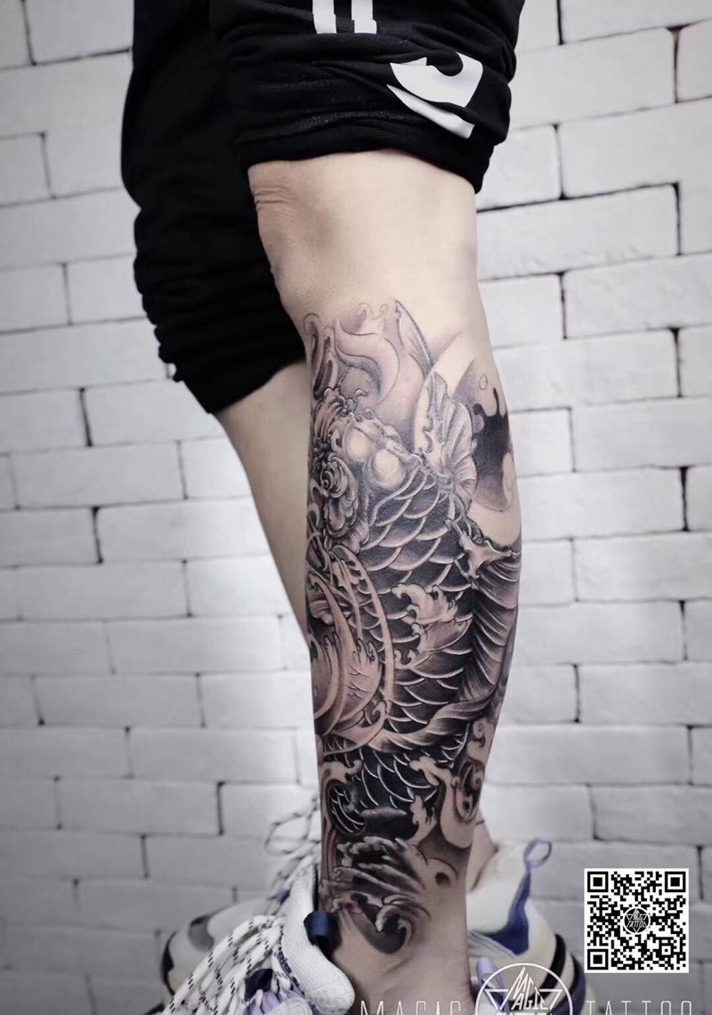 当前位置: 首页 >安徽省蚌埠市纹身店-魔法刺青MagicTattoo纹身图案>小腿锦鲤纹身图片_腿部新传统鱼锦鲤纹身图案