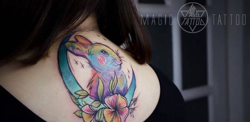 当前位置: 首页 >安徽省蚌埠市纹身店-魔法刺青MagicTattoo纹身图案>彩色小兔子纹身图片_颈部背部水彩兔子彩色纹身图案