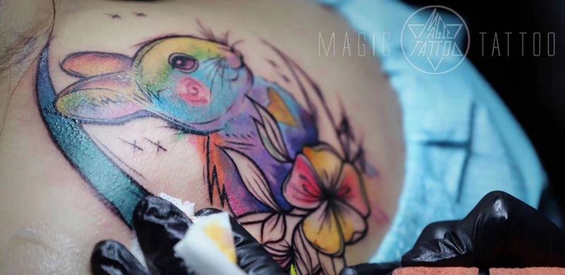 当前位置: 首页 >安徽省蚌埠市纹身店-魔法刺青MagicTattoo纹身图案>彩色小兔子纹身图片_颈部背部水彩兔子彩色纹身图案