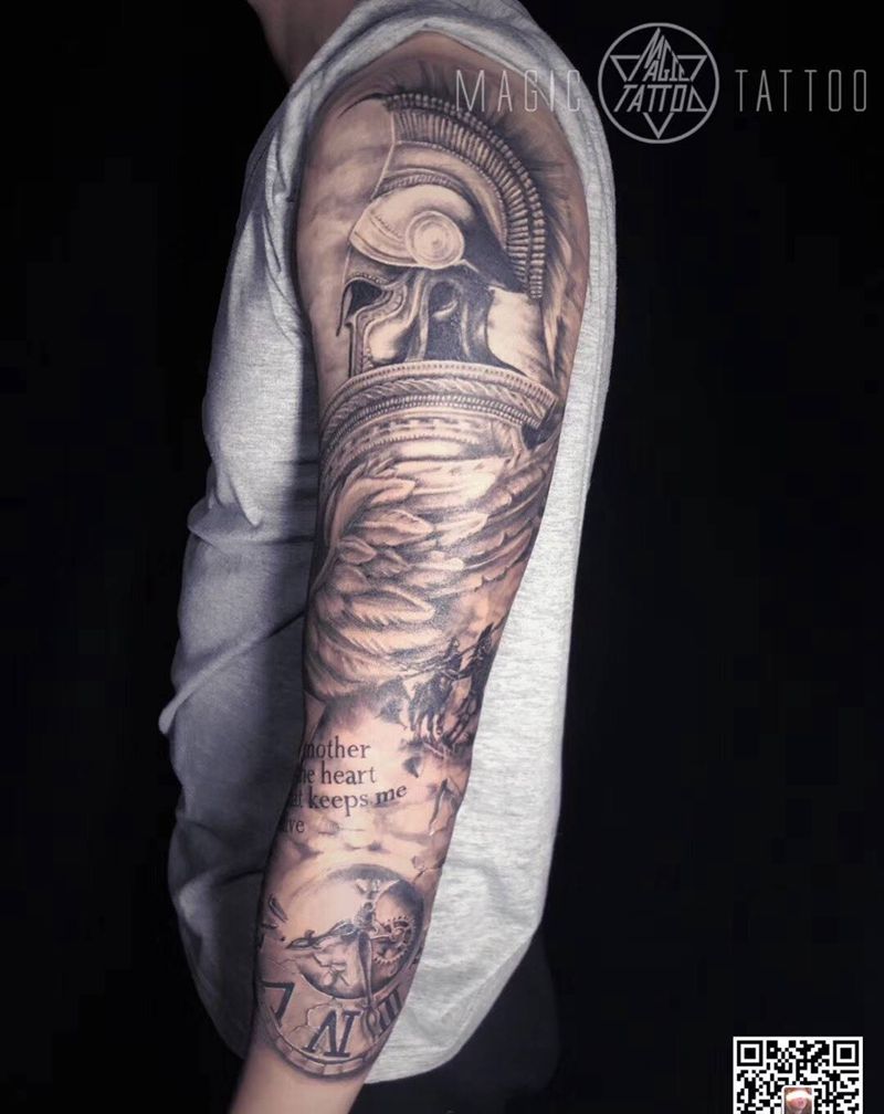 勇气与缅怀纹身图片_手臂欧美写实花臂斯巴达照片纹身图案