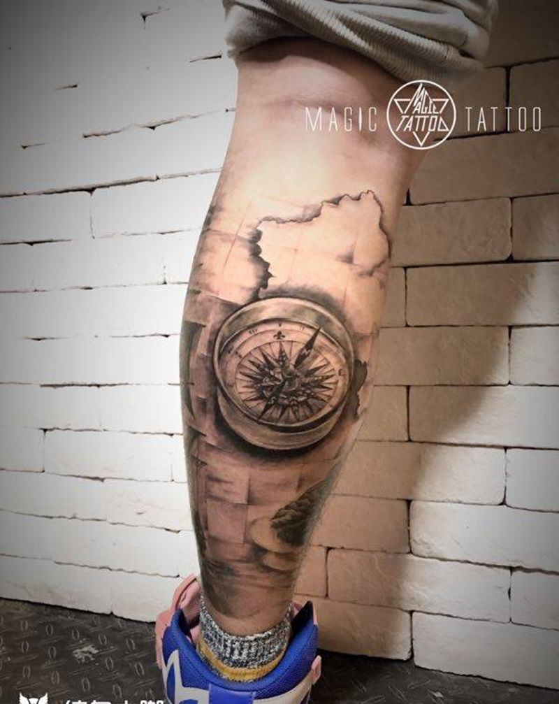 前三张为恢复后,最后一张为新鲜出炉纹身图片_成品腿部欧美写实蚌埠灯塔帆船海鸥地图经纬线纹身图案