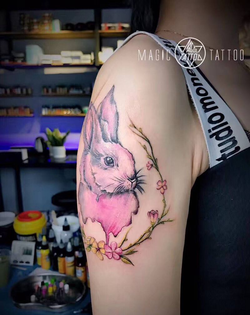 当前位置: 首页 >安徽省蚌埠市纹身店-魔法刺青MagicTattoo纹身图案>兔子纹身图片_成品手臂动物蚌埠兔子唯美彩色纹身图案
