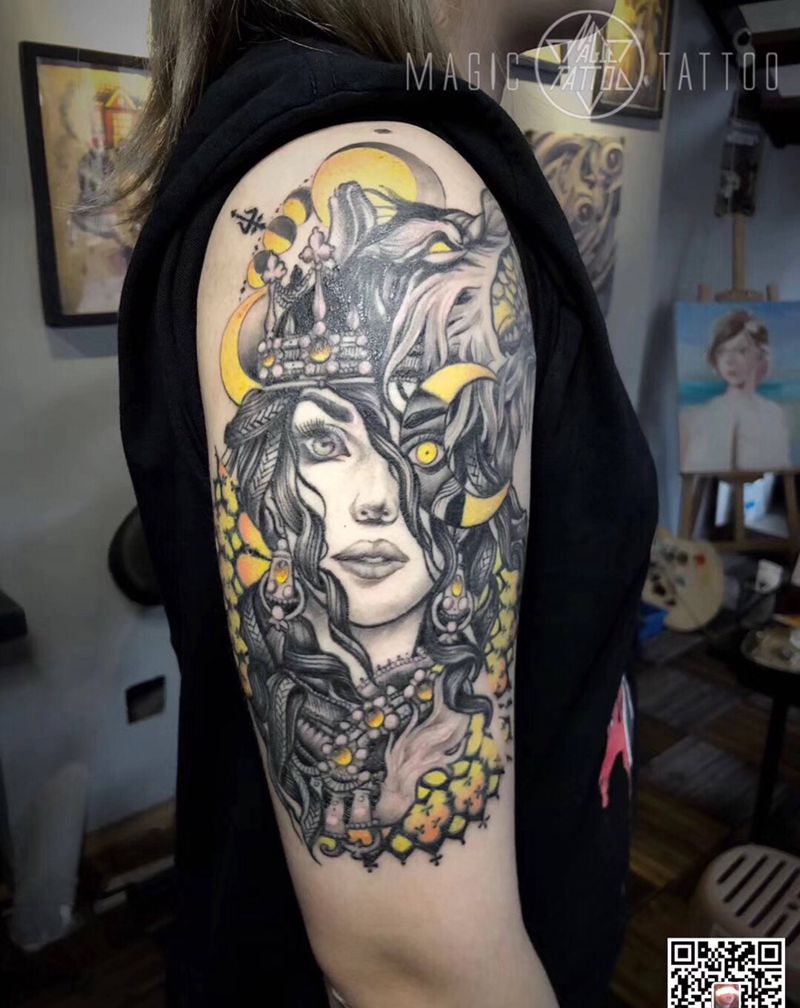• 纹身吧推荐的披肩图腾半胛纹身图案作品展示