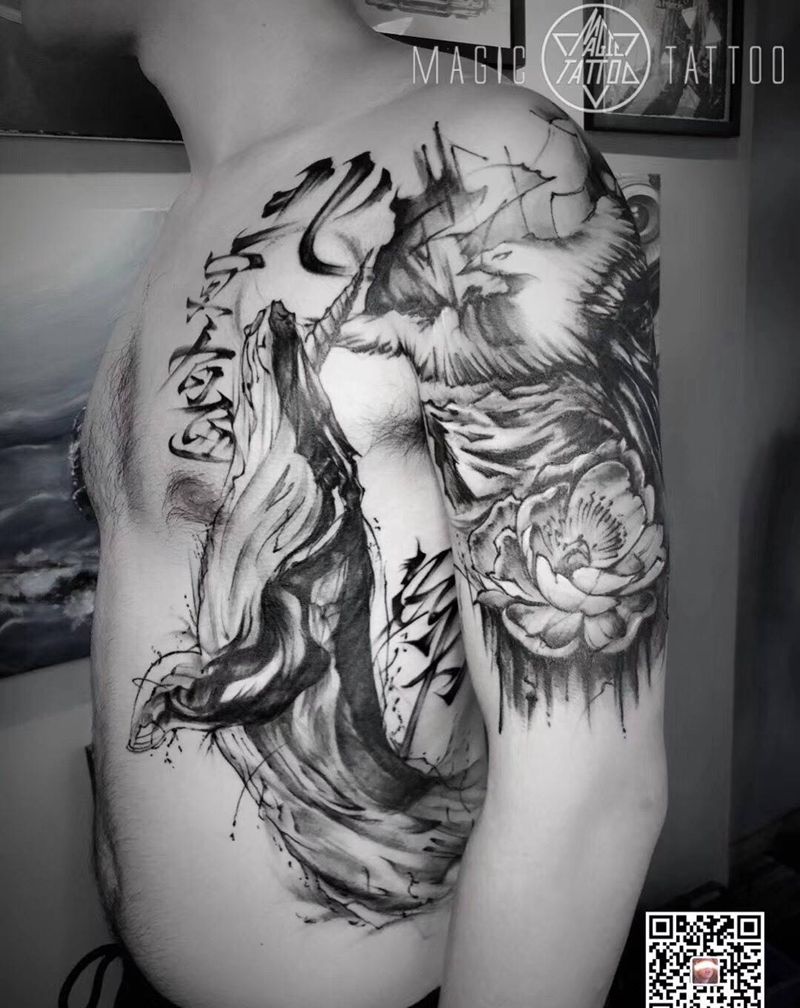 • 纹身吧推荐的披肩图腾半胛纹身图案作品展示