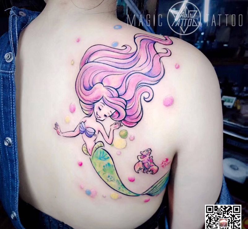 当前位置: 首页 >安徽省蚌埠市纹身店-魔法刺青MagicTattoo纹身图案>美人鱼纹身图片_背部New School美人鱼纹身图案