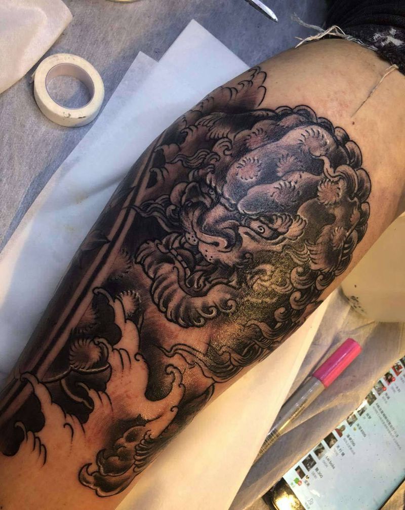 当前位置: 首页 >安徽省合肥市纹身店-本格刺青纹身图案>小腿唐狮纹身图片