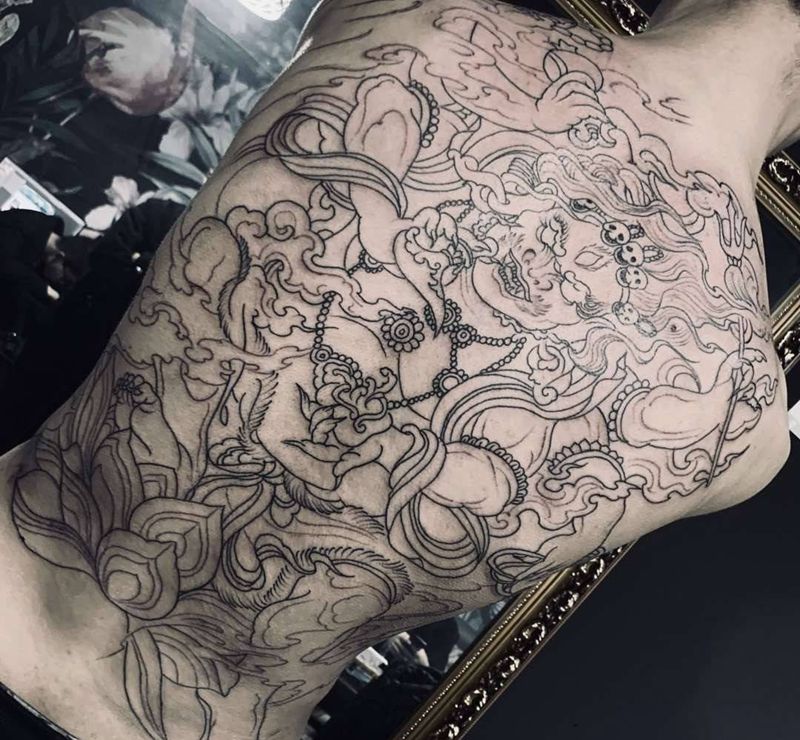 当前位置: 首页 >安徽省合肥市纹身店-本格刺青纹身图案>大黑天线稿纹身图片