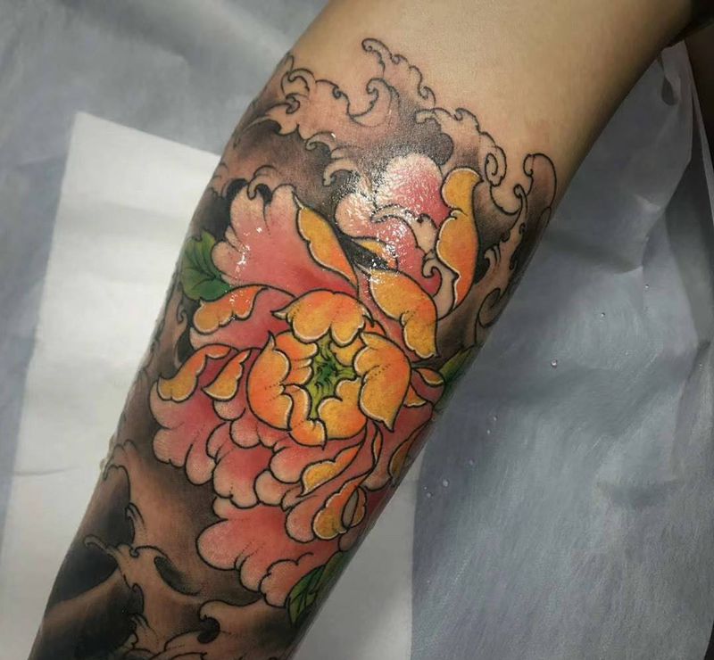 当前位置: 首页 >安徽省合肥市纹身店-本格刺青纹身图案>牡丹遮盖小腿纹身图片