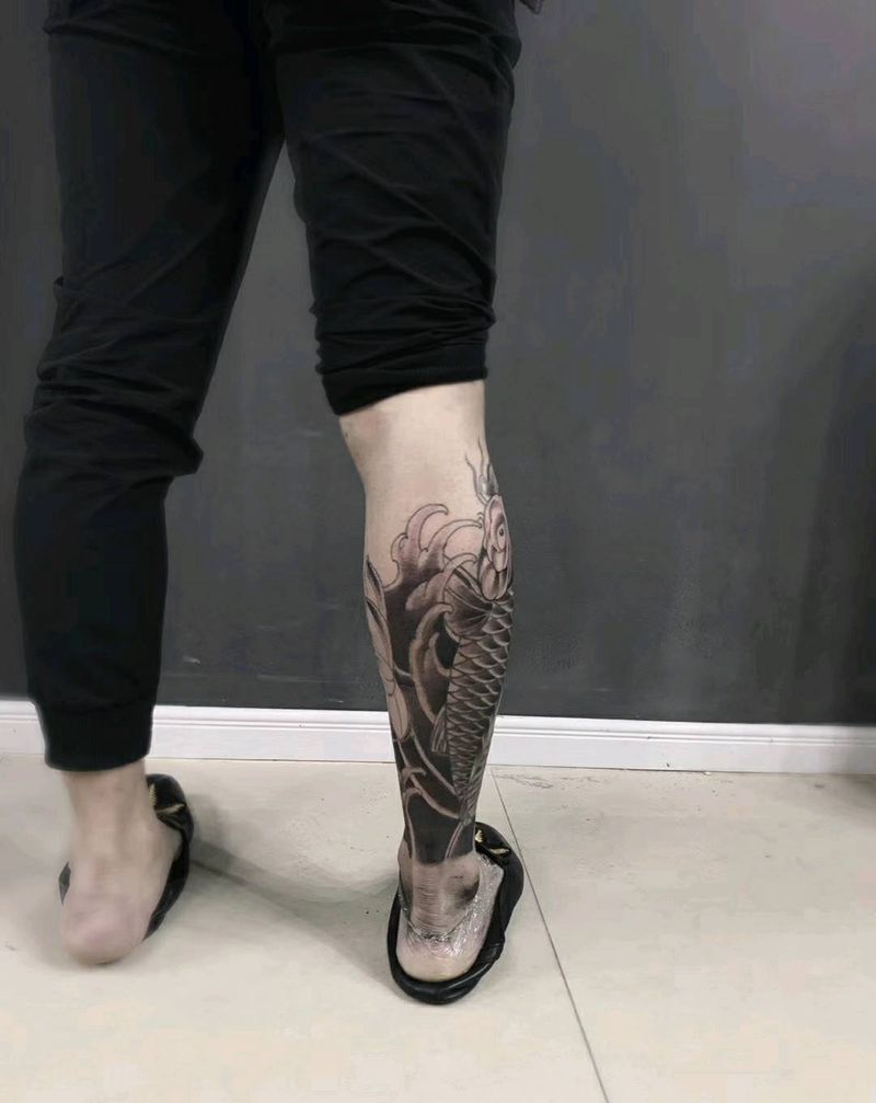 • T网红王老大花腿龙纹身图片_腿部新传统纹身图案