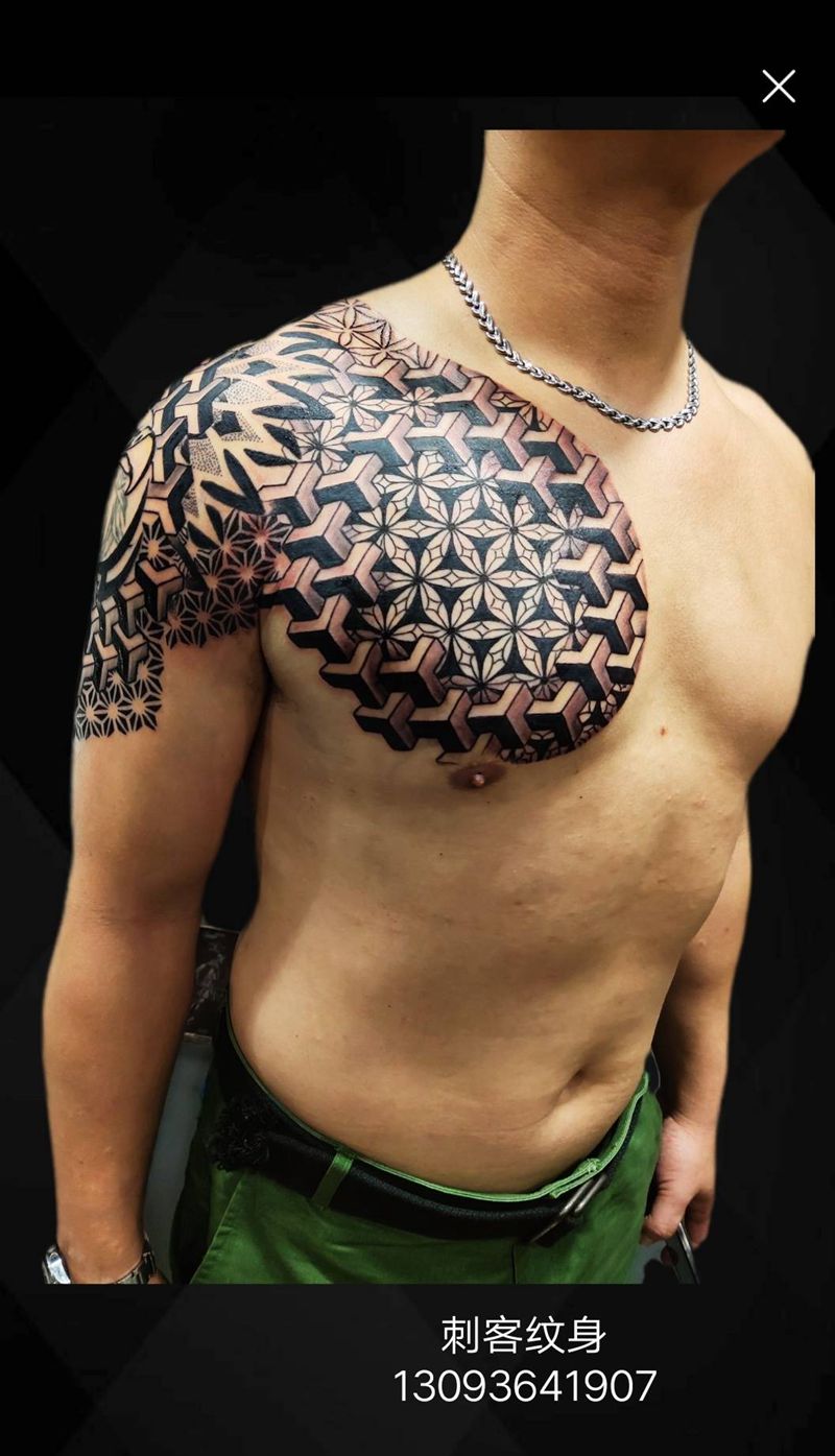 半甲,图腾纹身图片_胸部手臂图腾点刺纹身图案