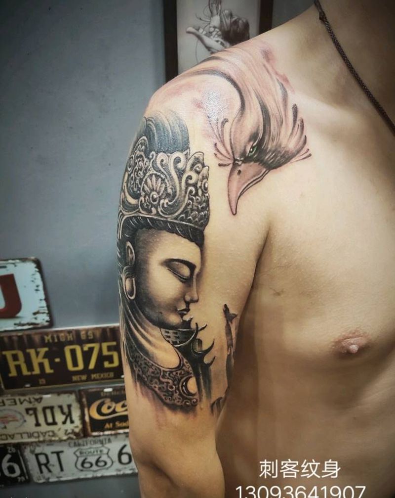 大势至纹身图片_肩部手臂欧美写实纹身图案