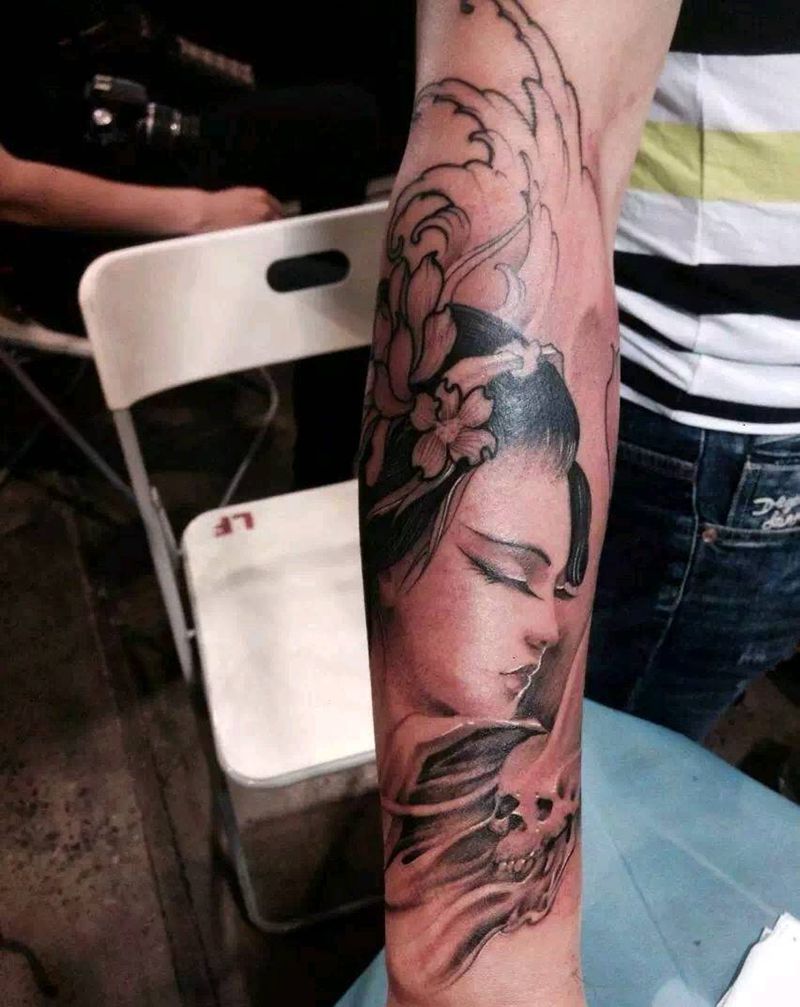 艺伎纹身图片_手部手臂欧美写实新传统纹身图案