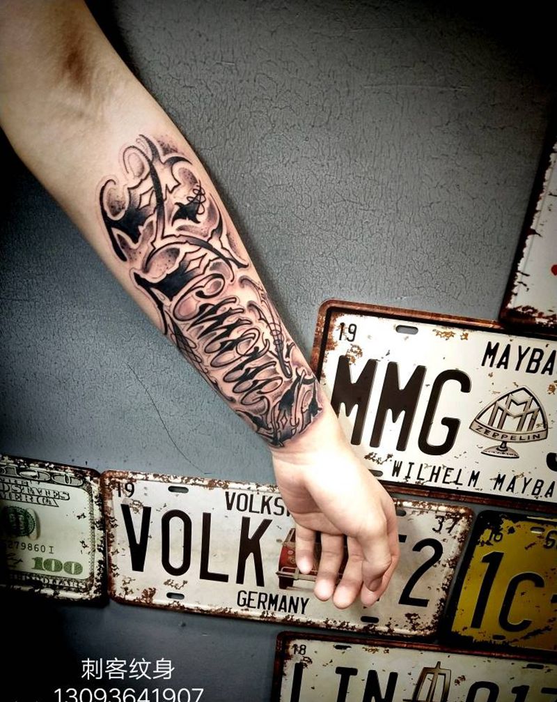 当前位置: 首页 >安徽省芜湖市纹身店-芜湖刺客纹身纹身图案>字母纹身图片_手臂手部欧美字符成品纹身图案