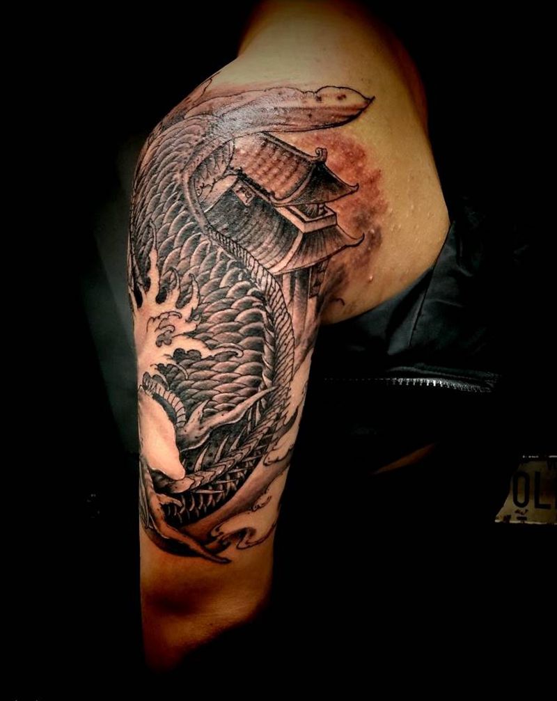 当前位置: 首页 >安徽省芜湖市纹身店-芜湖刺客纹身纹身图案>鳌鱼包大臂纹身图片_肩部手臂传统动物成品纹身图案