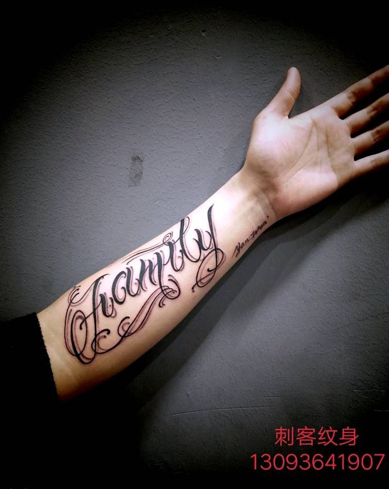 当前位置: 首页 >安徽省芜湖市纹身店-芜湖刺客纹身纹身图案>花体字纹身图片_手臂欧美清新字符图腾原创成品纹身图案