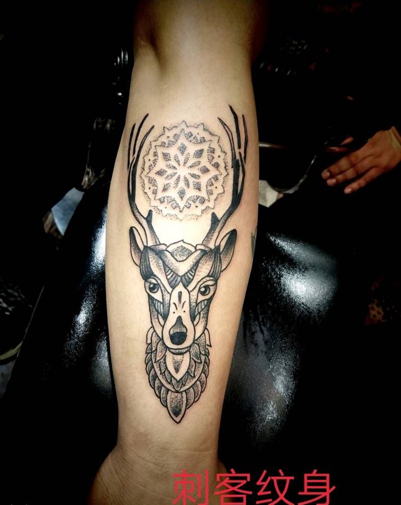 鹿纹身图片_手臂手部欧美动物成品纹身图案