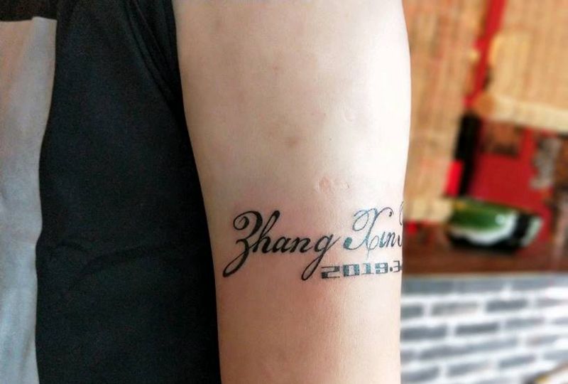 当前位置: 首页 >安徽省蚌埠市纹身店-画皮纹身舍 刺青工作室纹身图案>初为人父的喜悦纹身图片_手臂花体字纹身图案